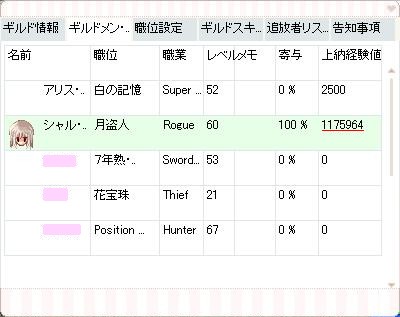 一時期、Lokiが本当に楽しくてSaraにあんまり帰ってなかった時期があって、そのときに友達も出来てGvしているらしいギルドに勧誘されてそのGに所属もしていました。(ちゃんとメインサーバー違うよーとも言ってました)