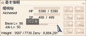 ・・・。 正直言うと強くなってるかイマイチわからない自分が(つー`。 明日で60%から70%いきますよっと。