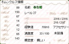 このssは成長記録決意前の、レベル26→27へのアップ。